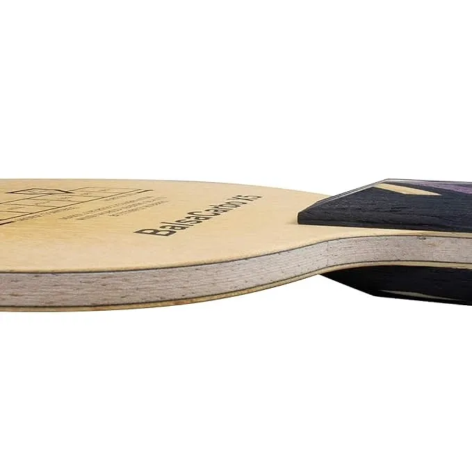 - Offers excellent feel and control, enabling aggressive play close to the table despite its power. — Boasts a comfortable handle for enhanced grip and playing experience. — Features a generously sized sweet spot, thanks to its carbon composition, while maintaining a non-carbon-like playing style.