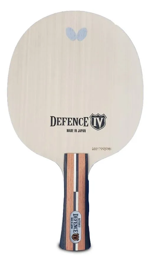 In summary, the Butterfly Defence 4 (IV) is a well-rounded blade that excels in control and consistency while maintaining a moderate speed that suits a wide range of playing styles. Its Arylate carbon construction and 6.4mm thickness contribute to its excellent ball feel, making it a popular choice among players who prioritize precision and tactical play.