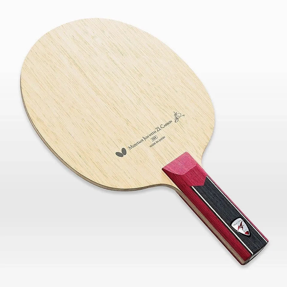 The Butterfly Jun Mizutani blade stands out as an exceptional choice for advanced table tennis players seeking a blend of speed, control, and spin. Composed of five plies—two layers of innovative ZL carbon and three layers of high-quality wood (limba and kiri)—this blade provides a unique playing experience characterized by its powerful catapult effect and excellent feel. Weighing approximately 88 grams with a thickness of 5.65 mm, it falls into the medium weight category, which many players appreciate for its balance and maneuverability.
