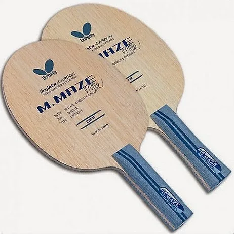 The Butterfly Michael Maze blade is a remarkable choice for players seeking a versatile blend of speed and control. Designed with a 5-ply wooden core of ayous surrounded by 2 plies of arylate-carbon, this blade combines the natural feel of wood with the enhanced rigidity of carbon, making it suitable for aggressive offensive playstyles. With an overall weight of approximately 85g and a thickness of 5.9mm, it strikes a balance between maneuverability and stability.