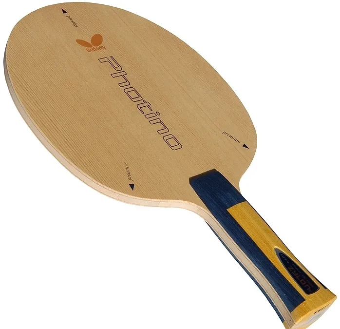 An overlooked blade, I must say. Having used various kinds of blades, I stopped at this Butterfly Photino. This blade really surprised me. I donât really like the âordinaryâ feel of hinoki/cypress, but when itâs combined with Zylon fiber, it gives a different feel. If it were food, I would say it tastes âcrispâ but soft at the same time. I used it with T05 Hard for the forehand side and T05 for the backhand. Wonderful for hard hitting and excellent for slow, spinny loops.