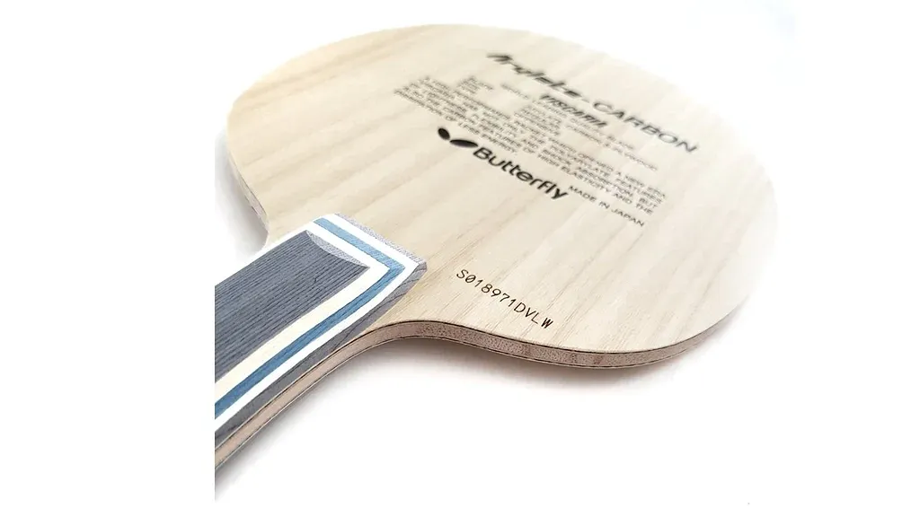 If you like to loop from below the table like Xu Xin does, I won’t recommend this blade because I don’t feel any flexibility on this blade, unless you’re using soft sponge rubber. I think Viscaria’s koto outer veneer makes this blade feel stiffer than any other carbon blade. I still prefer a carbon blade with limba to koto as an outer plies.