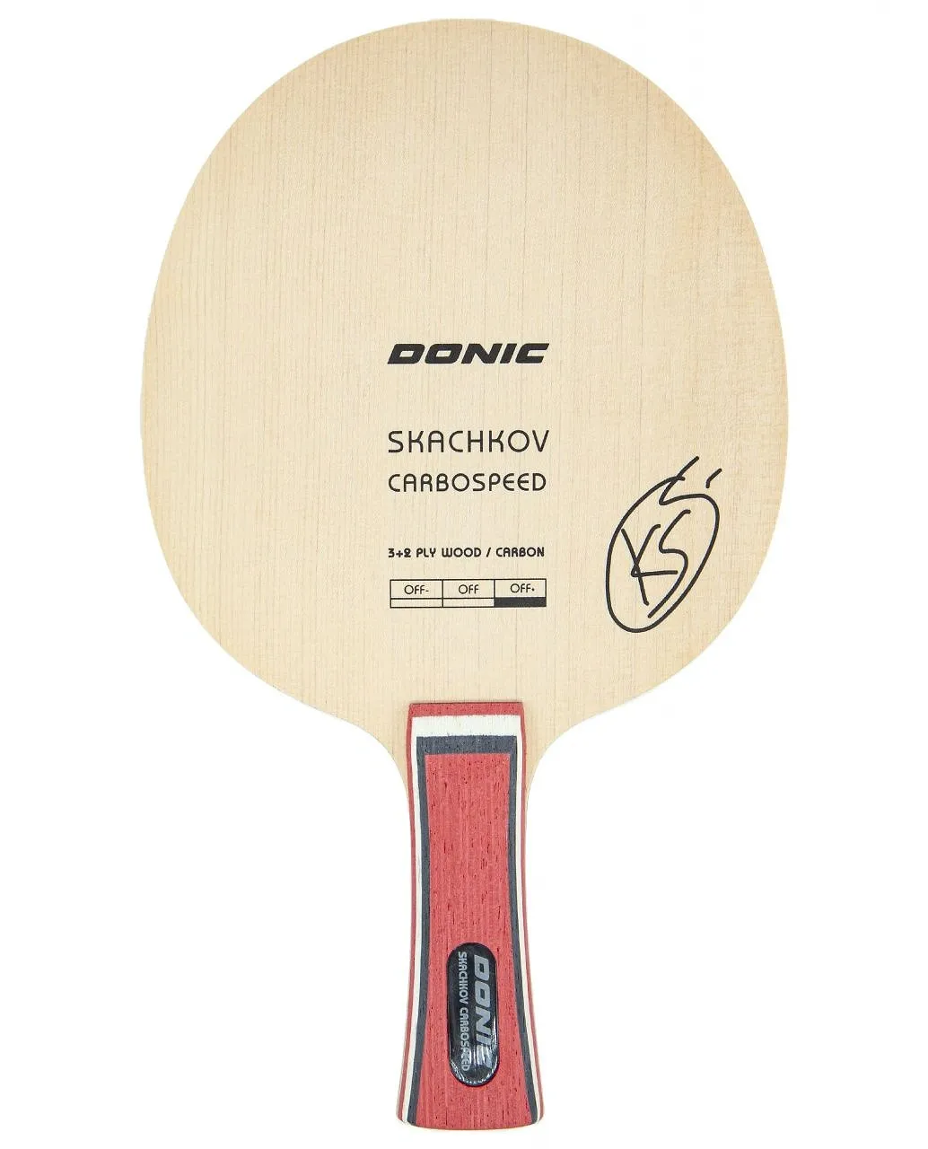The Donic Skachkov Carbospeed is available with conical, anatomical, straight, and penhold handle options, catering to different grip preferences.