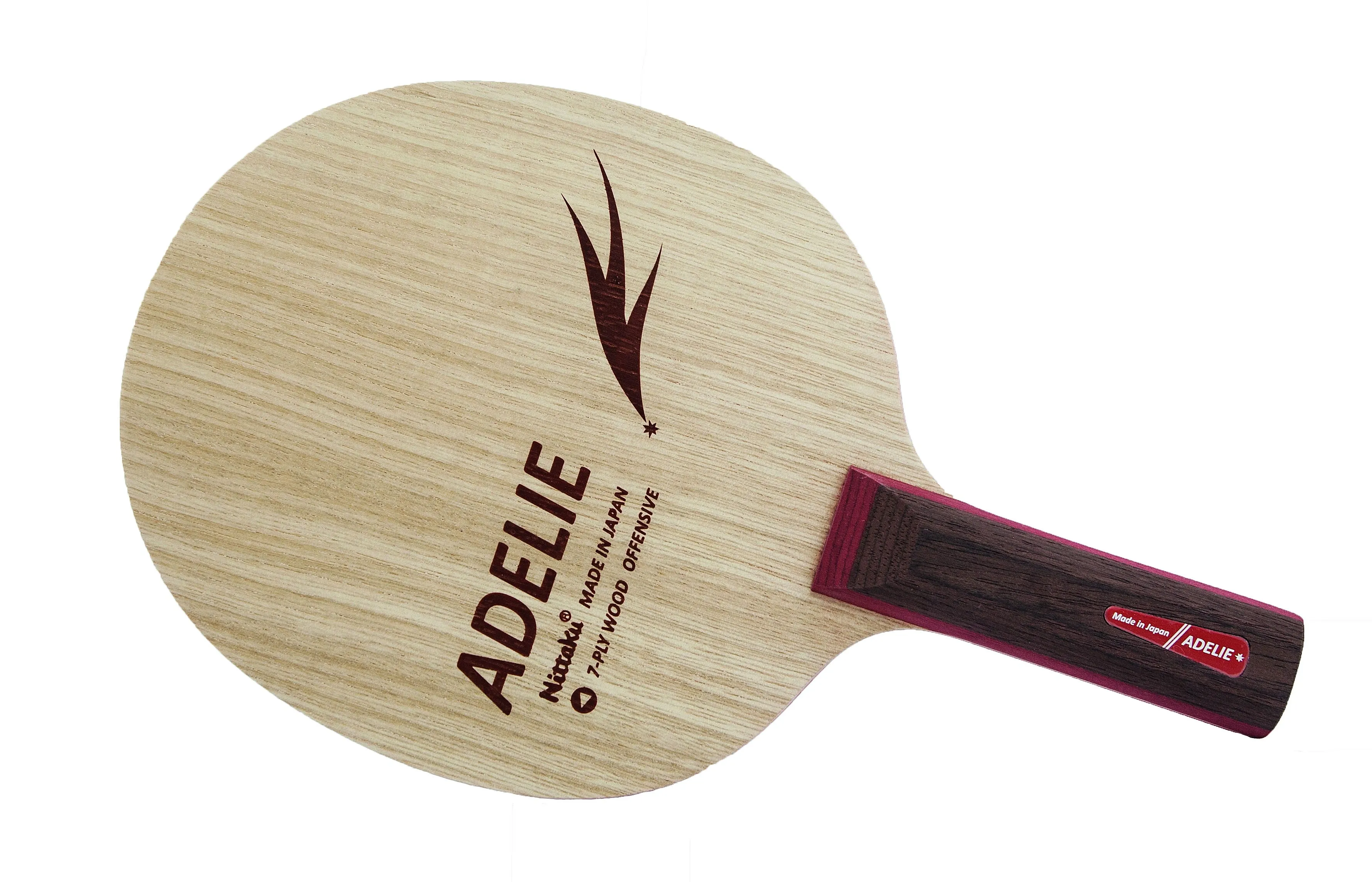 The Nittaku Adelie is a distinguished table tennis blade that stands out for its exceptional craftsmanship and performance. Constructed as a 7-ply blade, it features a combination of limba wood on the outer layers and ayous on the inner layers. This composition not only enhances responsiveness but also contributes to a unique feel, allowing players to express their skills effectively. Weighing in at approximately 85 grams and with a thickness of 6.2mm, the Adelie strikes a balance between agility and stability, making it suitable for a wide range of playing styles.