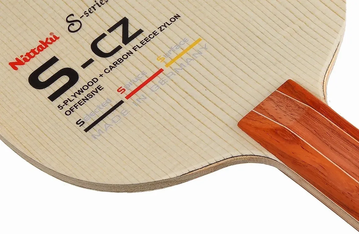 The Nittaku S-Series S-CZ is a premier table tennis blade, expertly crafted to meet the demands of even the most discerning players. Renowned for its exceptional blend of power, touch, and control, this blade is a testament to Nittaku’s commitment to quality and performance. Made in Germany in collaboration with SoulSpin, the S-CZ features a unique construction that combines Zylon with Hinoki veneers, resulting in a blade that offers superior feedback while executing both intricate short-game techniques and powerful offensive shots from a distance.