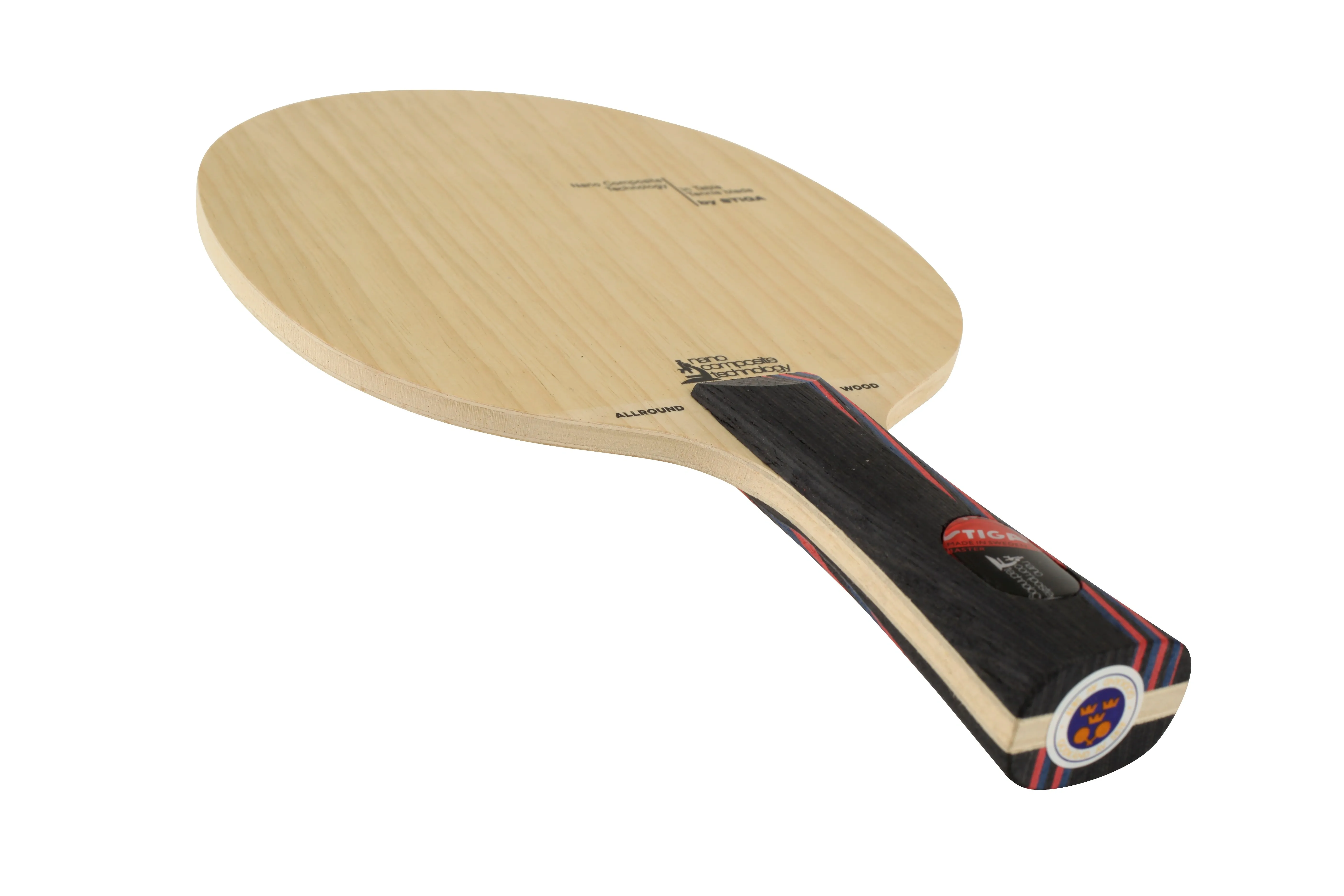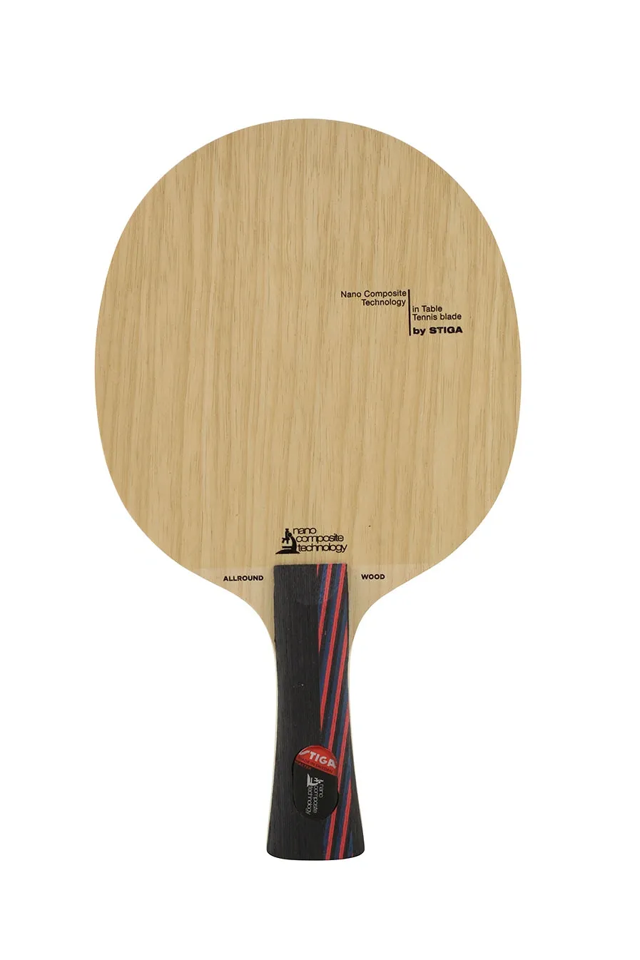 Another classic all-wood blade from Stiga is the Stiga Allround NCT. It is 6mm thick and is constructed from five veneers: limba-ayous-ayous-ayous-limba. NCT coating is applied to the surface, which likely helps protect against splintering without altering the bladeâs properties.