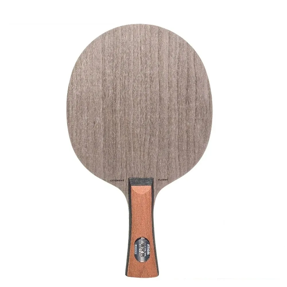 The Stiga Offensive Classic WRB is a renowned 5-ply wooden table tennis blade highly regarded for its offensive capabilities and exceptional control. Crafted with a combination of Koto, Spruce, and Ayous, this blade harmonizes speed and touch, making it suitable for a variety of playing styles. It features the WRB (Weight Balance), which lightens the handle for better maneuverability and responding quickly when engaged in fast-paced exchanges.