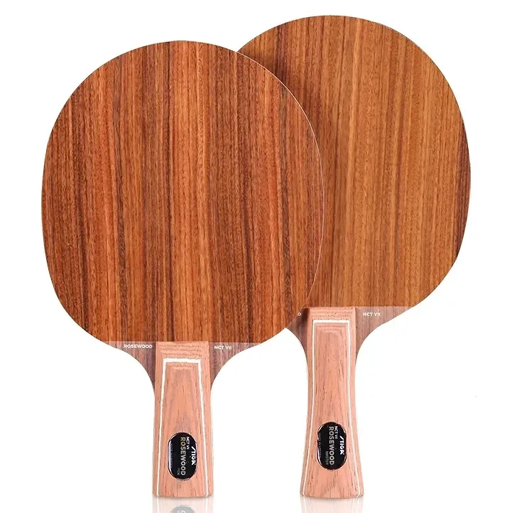 The Stiga Rosewood NCT VII is a premier table tennis blade acclaimed for its exceptional balance of speed and control, making it an excellent choice for aggressive players who thrive on offensive strategies. Crafted primarily from rosewood, this 7-ply wooden blade boasts a thickness of 6.9mm, which contributes to its commendable performance characteristics. Weighing approximately 97 grams, it falls into the medium-heavy category, providing solid stability while allowing for precise maneuverability during play.
