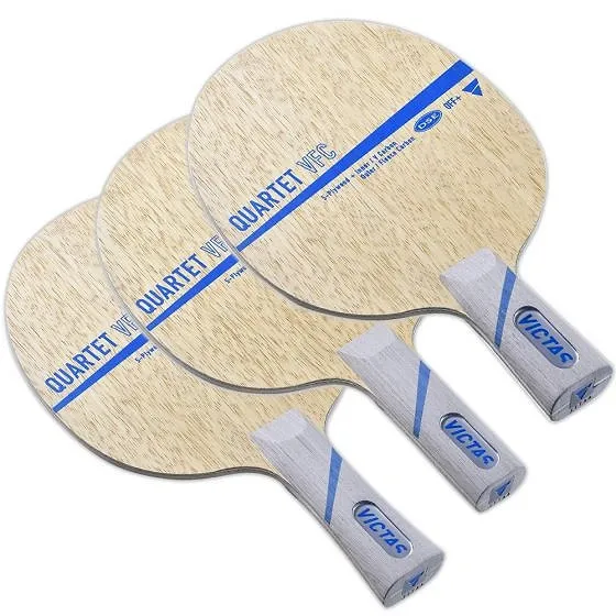The Victas Quartet VFC table tennis blade is a high-performance option tailored for players seeking a blend of speed and control. This blade primarily utilizes a unique composition of V Carbon, which enhances power while maintaining a certain level of safety over the table. It is recognized for its extraordinary counter-looping capabilities, making it a favored choice for aggressive players who like to dominate the game near the table.