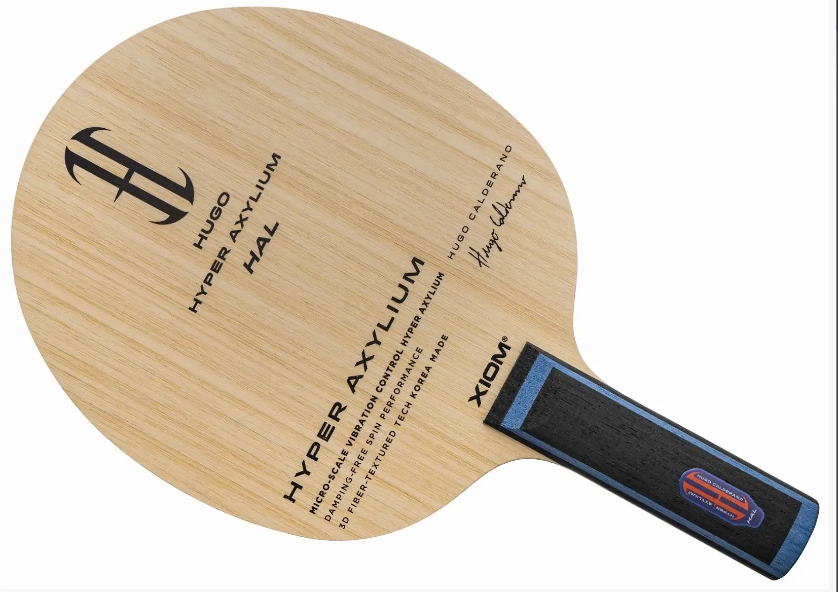 The Xiom Hugo Calderano HAL is a cutting-edge table tennis blade that strikes an impressive balance between speed, control, and flexibility, making it a formidable choice for players looking to elevate their game. Constructed with a unique composition of seven plies, the HAL features a thin layer of red arylate, providing a distinct feeling reminiscent of all-wood blades while benefiting from the advantages of composite materials. This blade’s design caters well to aggressive players who enjoy looping and counter-looping from mid-distance, facilitating swift acceleration of the ball with remarkable ease.