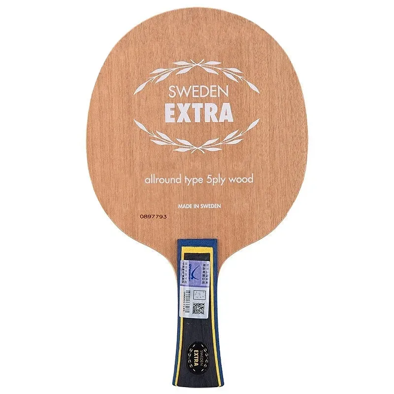 This blade is the semi-old Extra, which came after the Gatien Extra and before the Sweden Extra. The differences between these models are unknown. It’s a somewhat heavy blade, weighing 90 grams, and not as slow as some people think. The outer ply is Aniegre, which has a hardness similar to Koto. The top layer is fragile, so the blade requires coating. It’s an excellent choice for young players and can be used for many years.