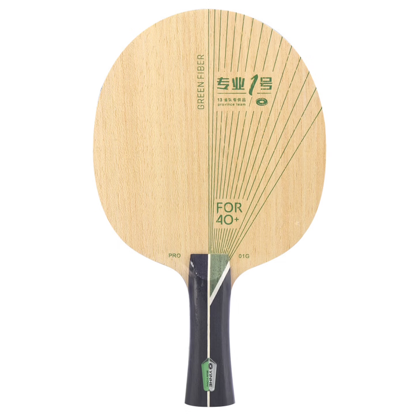 The YINHE PRO-01G is a professional-grade 7-ply composite blade featuring a 5-ply wood and 2-ply Outer Green Arylate Carbon (ALC) construction. As a reinforced evolution of the classic PRO-01, this “Green Fiber” edition is designed for a more aggressive offensive game. By utilizing an outer-layer carbon structure, the blade provides a direct energy transfer and a crisper feel compared to inner-layer or softer carbon alternatives.