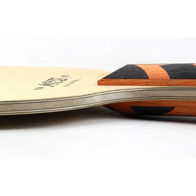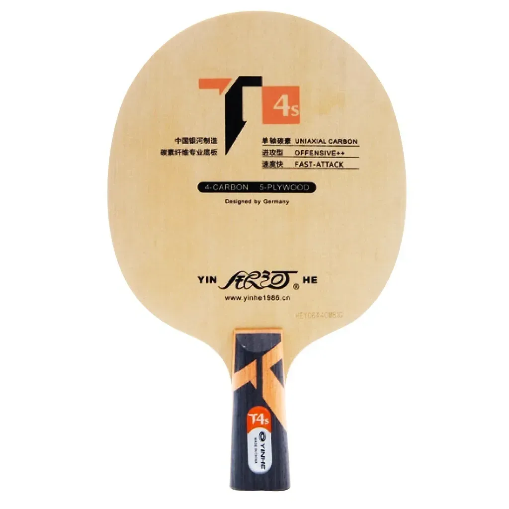 The Yinhe T-4s is a remarkable table tennis blade that sits comfortably among off-+ rated blades, providing an impressive fusion of speed and control. Made primarily from 9 plies of uniaxial carbon, this blade is engineered for aggressive players who favor an attacking style. The incorporation of carbon contributes to its stiffness while enhancing its speed capabilities, allowing players to unleash powerful smashes and topspins with relative ease.
