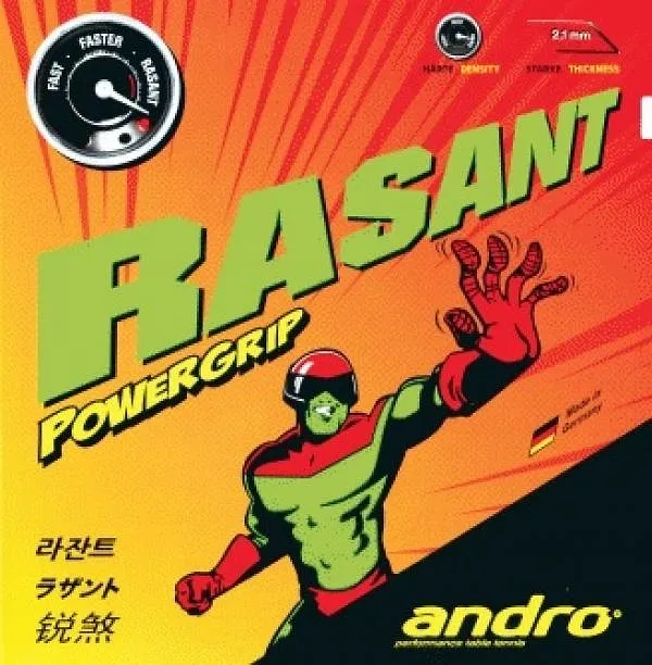 The Andro Rasant Powersponge is a versatile table tennis rubber that combines impressive spin, speed, and control, making it an excellent choice for players seeking to enhance their game. This rubber features a medium-soft sponge composed of innovative tensor technology, which helps generate significant spin and power without sacrificing precision. This combination allows players to execute powerful topspin shots while maintaining exceptional control, particularly during offensive play near the table.