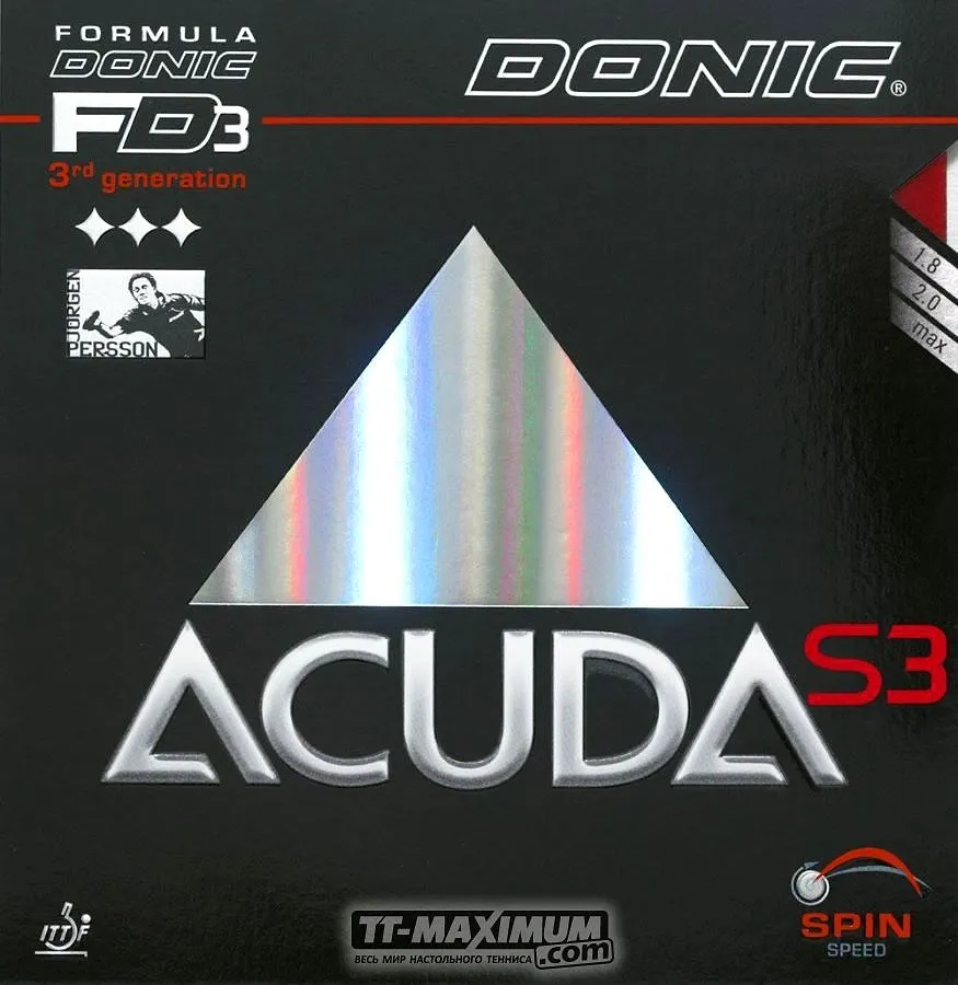The Donic Acuda S3 is a versatile table tennis rubber designed for offensive players seeking both speed and spin in their game. With a max speed rating of 100 and an impressive spin rating of 100, this rubber excels in delivering powerful loops and aggressive shots. Its soft sponge, rated at 1.9 for hardness, allows for excellent touch and control, particularly beneficial for players who enjoy attacking play from mid-distance. The S3 is characterized by its loud sound upon impact—a feature that enhances the tactile feedback during strokes, giving players higher confidence with their shots.