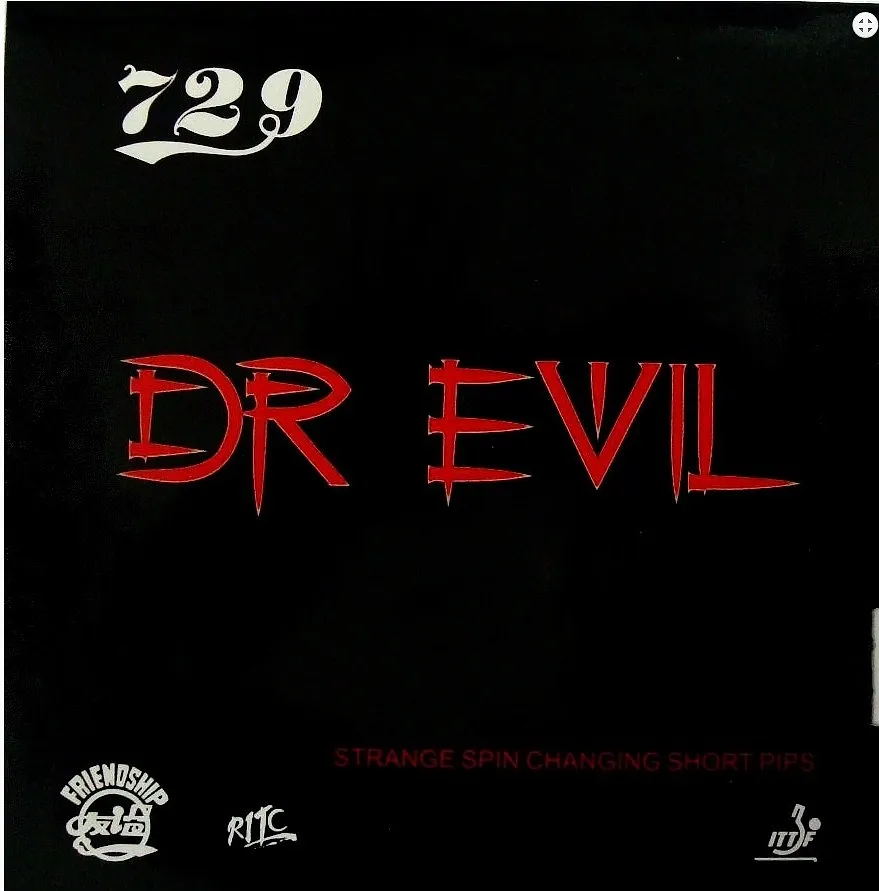 The “Dr. Evil” rubber is a unique defensive-oriented rubber designed to disrupt opponents and control the pace of play. It is a long pips-out rubber with a focus on generating unpredictable ball trajectories and maximizing reversal of spin. The pips are likely relatively soft and tall, allowing for significant bending and deformation upon impact, which contributes to the rubber’s deceptive qualities. While not designed for outright speed, the rubber offers moderate pace when hitting through the ball, but its primary strength lies in its ability to absorb incoming spin and return the ball with a reversed or deadened effect. Control is paramount with Dr. Evil, allowing players to place the ball accurately and dictate the rally.