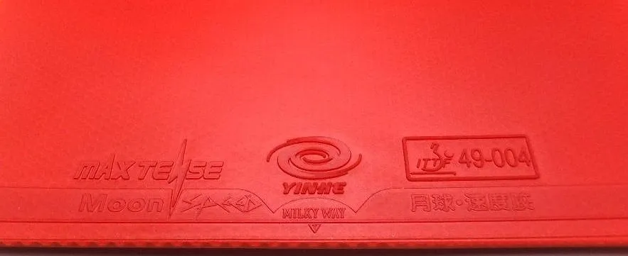 For alternatives, players seeking something similar might consider rubbers like the Xiom Vega Pro or Butterfly Tenergy series, though price points can be significantly higher. Overall, the Yinhe Moon offers a reliable option for those at the mid-range player level, striking a noteworthy balance between performance and affordability, making it a worthy addition for both forehand and backhand applications in a player’s repertoire.